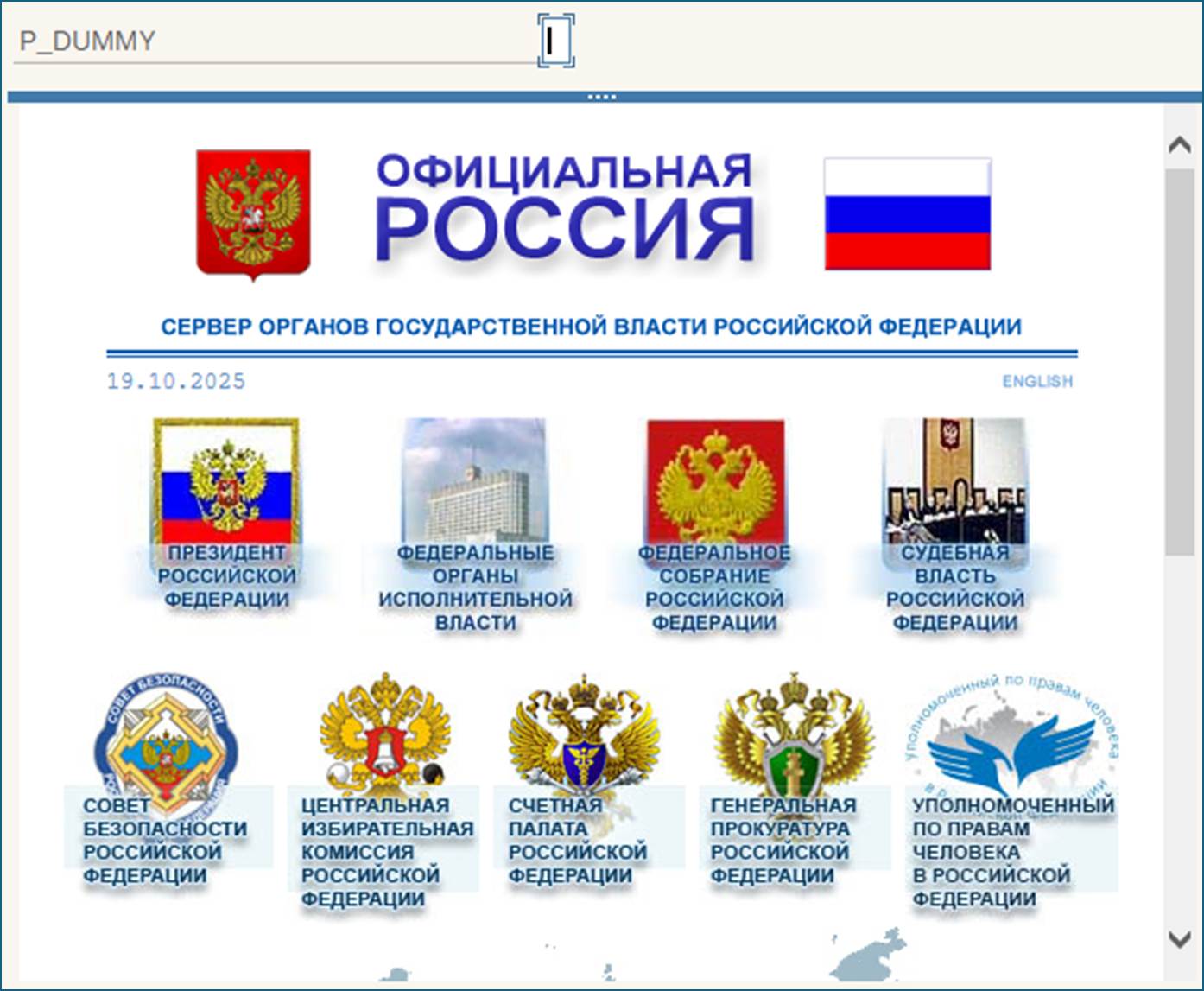 А вот для примера предъявление сайта правительства России на селекционном в HTML-браузере экране (Лист. 2, результат — Рис. 2):